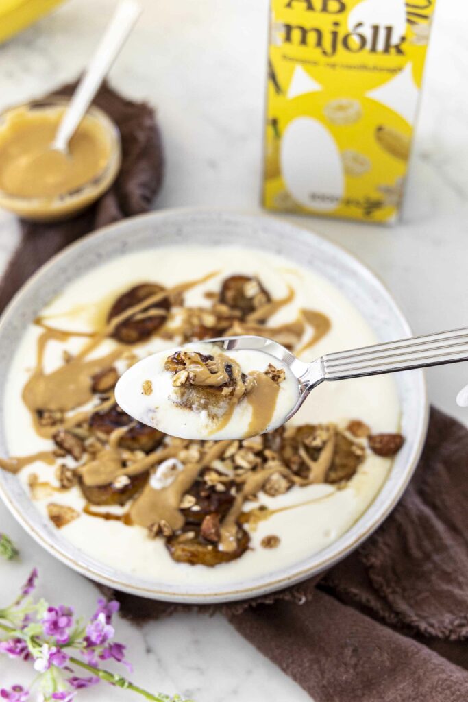 Ab-mjólkur skál með smjörsteiktum bönunum