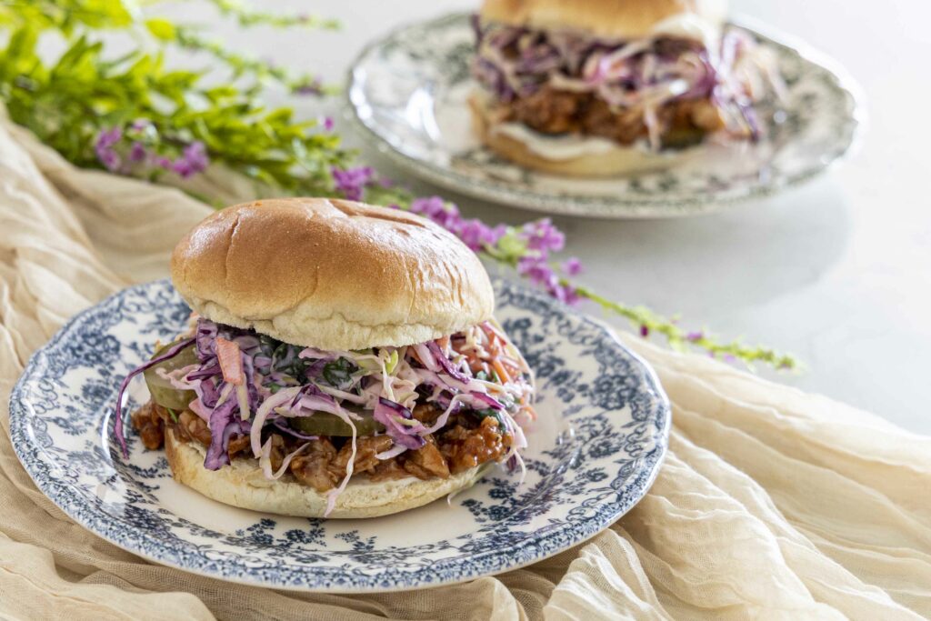 Þetta er svona borgari sem maður fær löngun í aftur og aftur. Djúsí, hægeldaður BBQ kjúklingur sem er rifinn niður og drýpur af sósu, borinn fram í mjúku hamborgarabrauði með fersku og stökku hrásalati. Hér finnur þú fullkomið jafnvægi á milli sætleika, sýru og ferskleika.