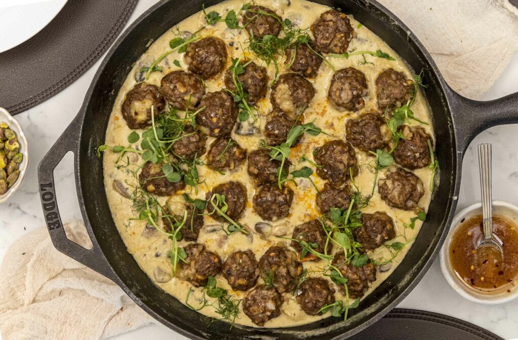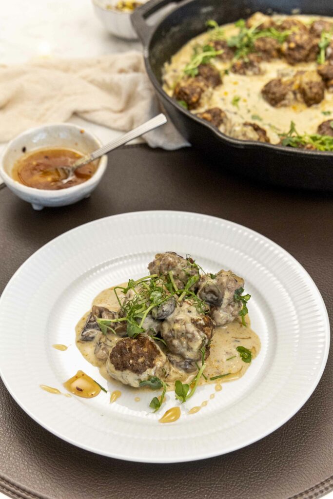 Uppskriftina af þessum einstaklega ljúffengu kjötbollum sem eru fylltar með mozzarella og bornar fram í sveppa rjómasósu finnur þú inn á meðlima vettvanginum mínum inn á Patreon.