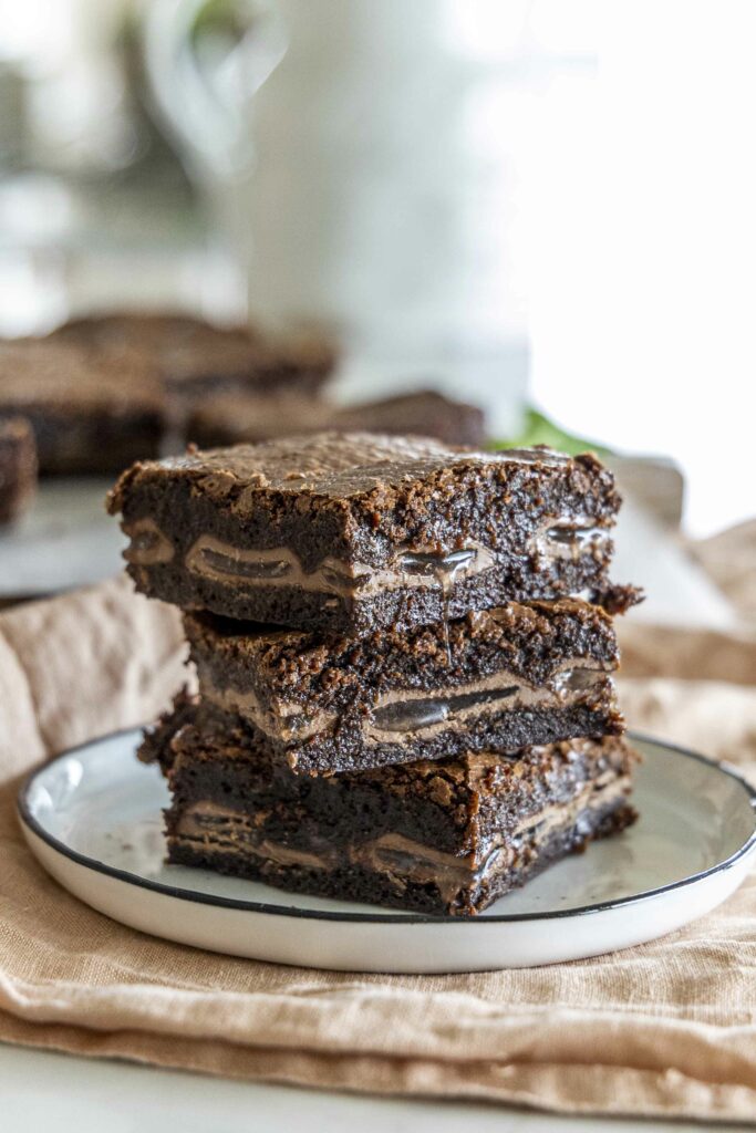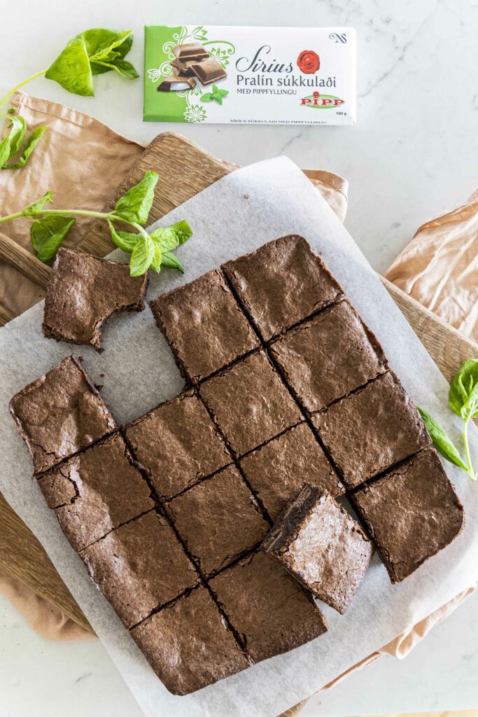 Þessi piparmyntu-pralín brownie er eins og biti af hamingju í hverjum munnbita. Djúpt súkkulaðibragð, mjúk og seig brownie kakan með svo guðdómlegu lagi af Síríus piparmyntu-pralín – útkoman er algjörlega ómótstæðileg!