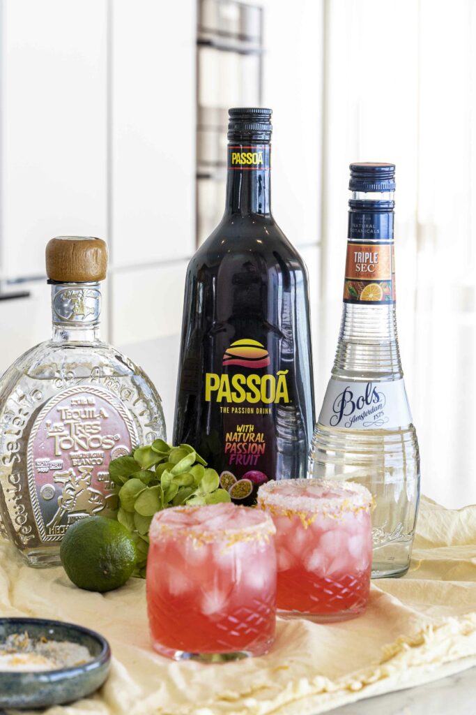Passoa gefur henni suðrænt passionfruit bragð, lime safinn heldur henni ferskri og Triple Sec dregur fram sítrusnóturnar sem passa svo vel með góðu tequila. Hér nota ég Los Tres Tonos sem er mjúkt og hreint í bragði og leyfir ávaxtakeimnum að njóta sín.