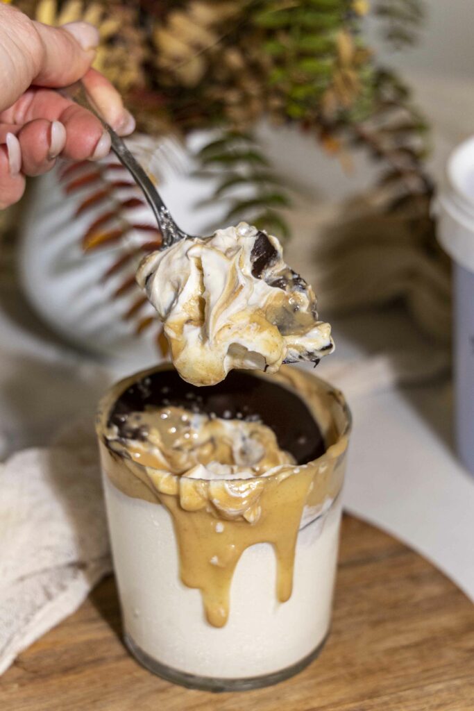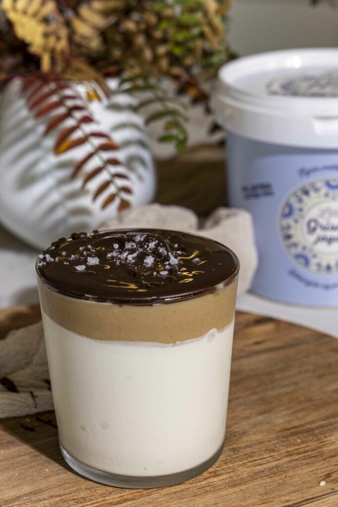 Gríska jógúrtið fær á sig djúsí topp með hnetum, bráðnu súkkulaði og sjávarsalti sem gefur ómótstæðilegan karamellukeim. Einföld, próteinrík og ótrúlega góð – hvort sem þú vilt fljótlegan morgunmat, millimál eða sæta eftirréttaskál sem þú getur notið með góðri samvisku.
