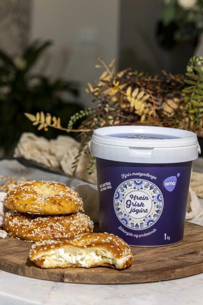 Þær eru bakaðar úr gríska jógúrtinu frá Örnu Mjókurvörum sem er núna komið í 1 kg umbúðum! Ég alveg elska nýju umbúðirnnar þar sem við borðum mikið af gríska jógúrtinu og ég slepp þá við að vera kaupa margar dollur, umhverfisvænna og auðveldar lífið helling.