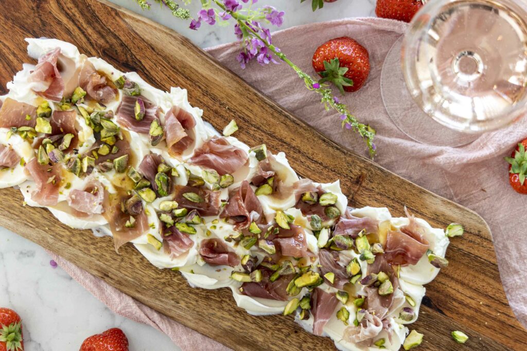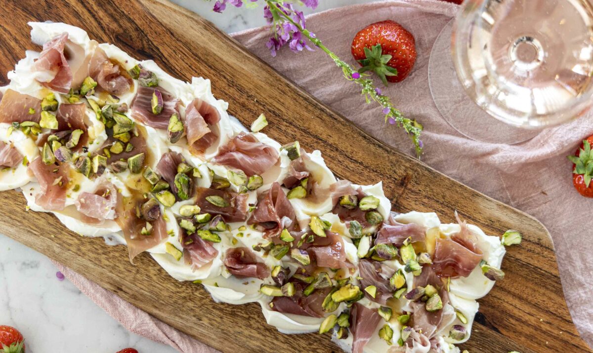 Rjómaostabakki með parmaskinku og pistasíum