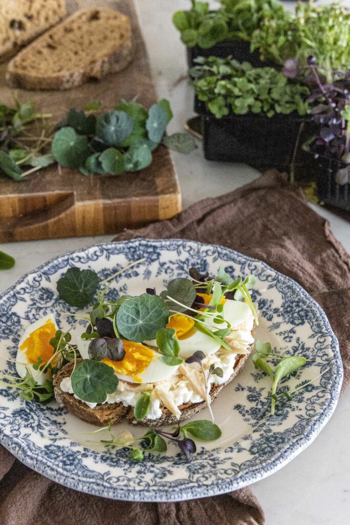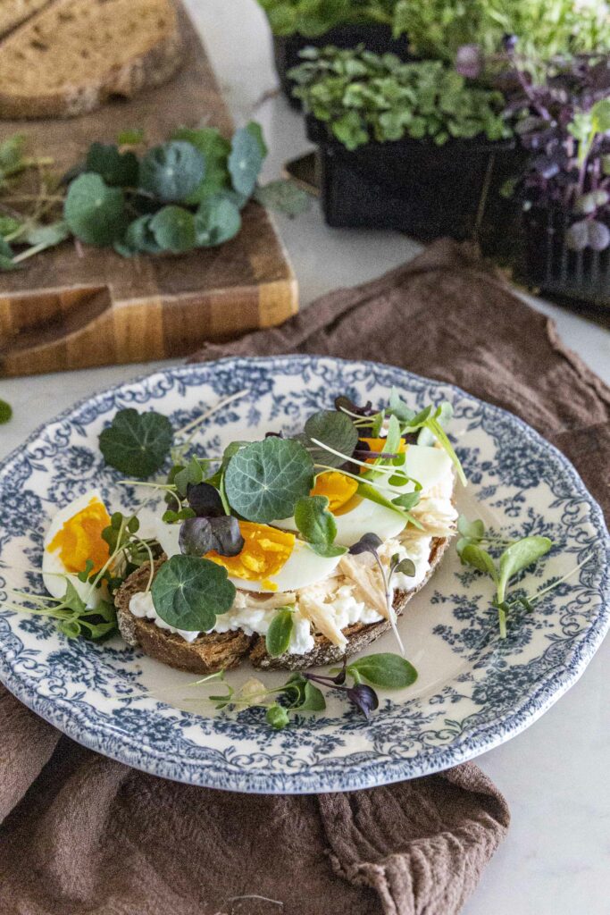 Ristað súrdeigsbrauð með kotasælu, hágæða túnfiski og eggi gefur mér góða blöndu af próteini og hollri fitu – en það sem lyftir þessu á næsta level eru spretturnar frá VAXA 🌱