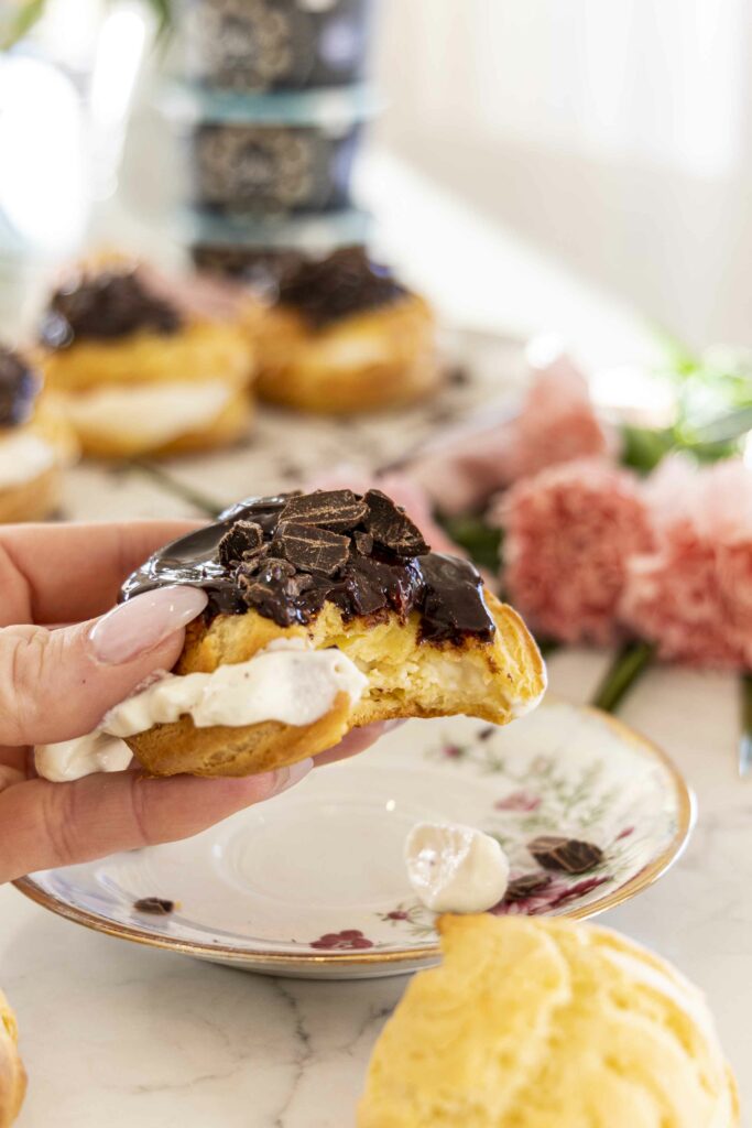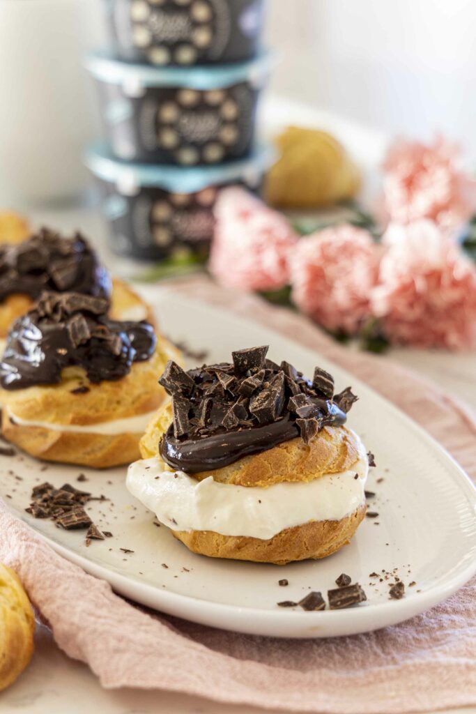 Stracciatella ostaköku fylltar vatnsdeigsbollur