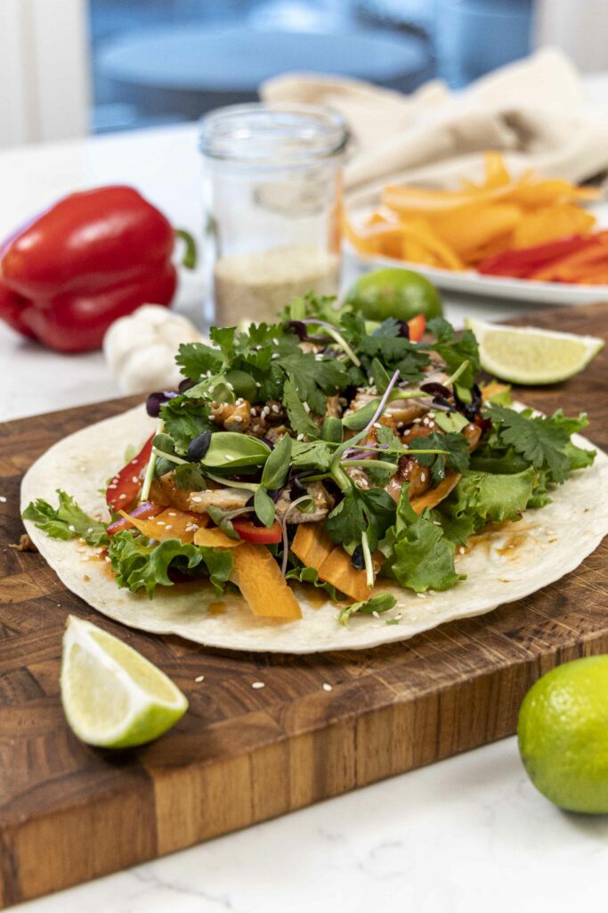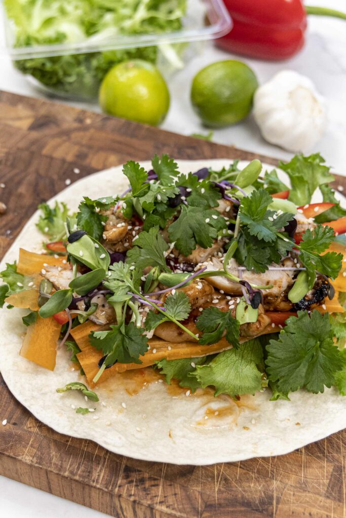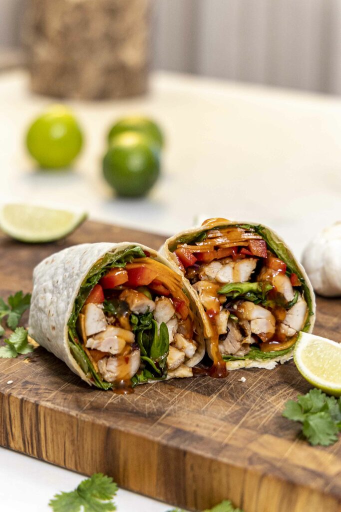 Þessar sweet chillí kjúklingavefjur eru fullkomið dæmi um hversu einfaldur matur getur verið ótrúlega bragðmikill. Safaríkur kjúklingur með hvítlauk, engifer og sweet chillí sósu, ferskt grænmeti og kóríander, allt vafið saman í mjúka vefju sem klikkar ekki.