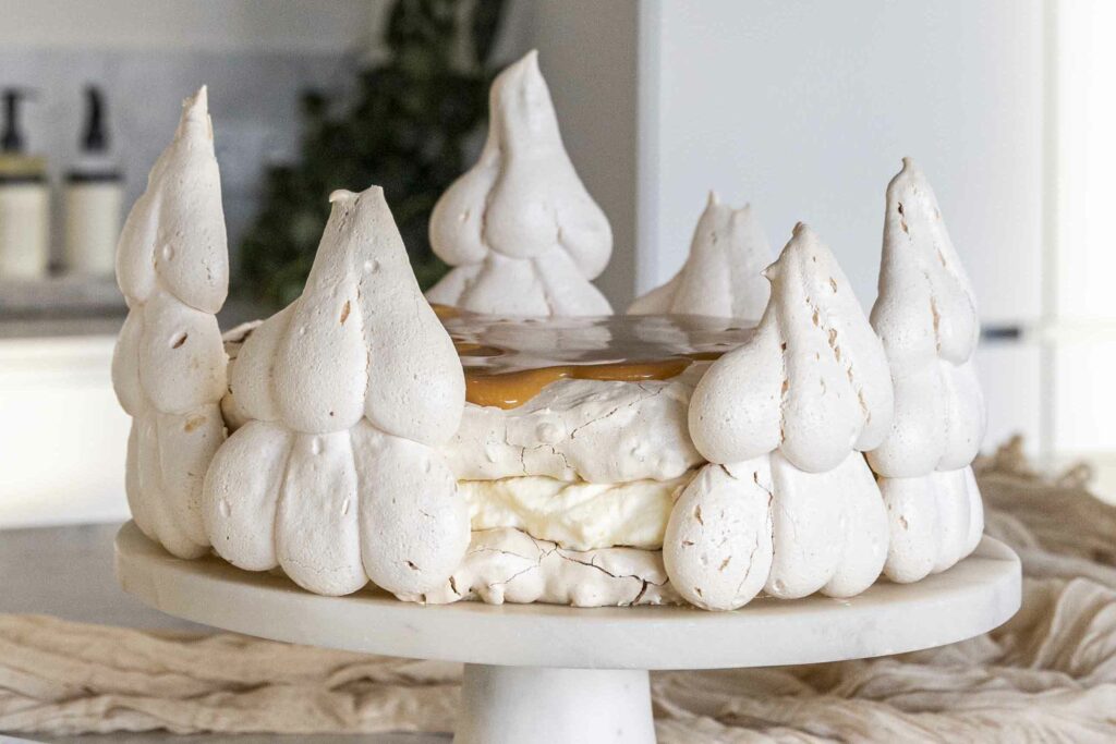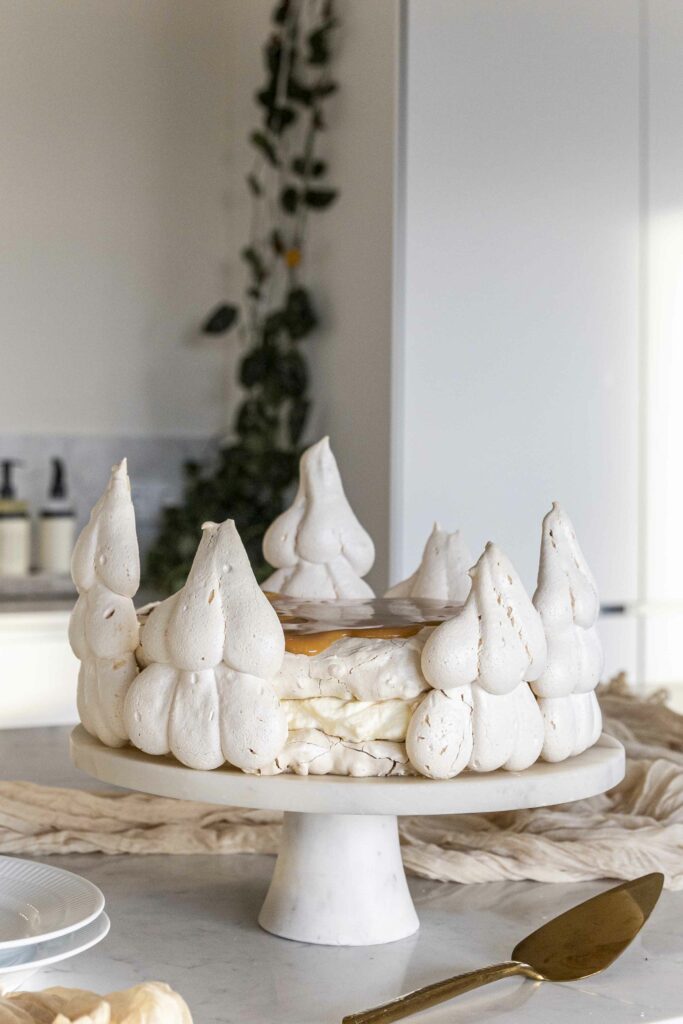Þessi marengsterta er algjör draumur! Fyllingin er einstaklega góð og skreytingarnar skemmtilegar.